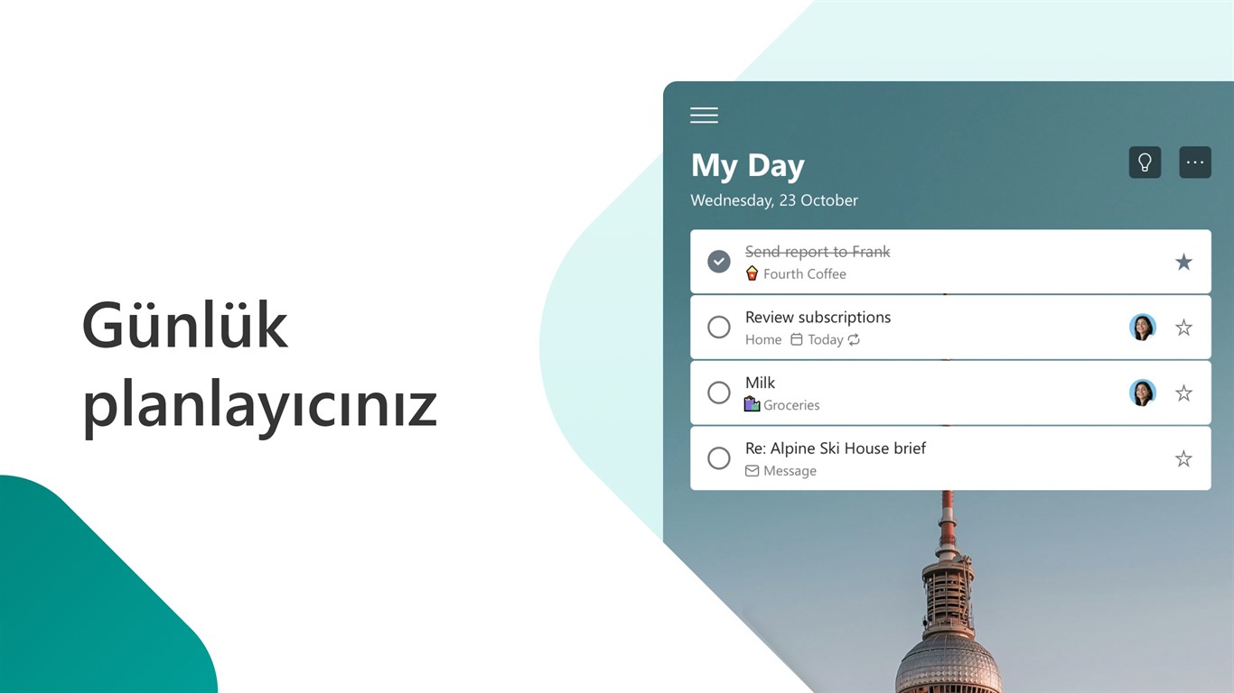 •To Do'nun telefonunuz ve bilgisayarınız için uygulamaları sayesinde her yerden üretken olun