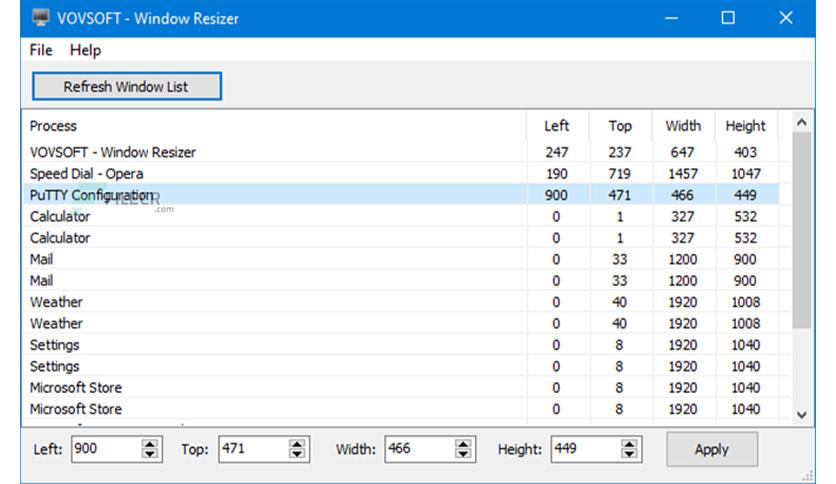 VOVSOFT Window Resizer, herhangi bir pencerenin tam olarak yeniden boyutlandırılmasına izin verir.