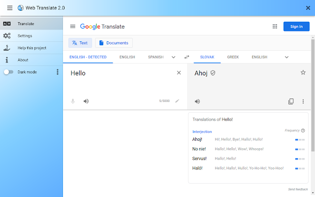 Web Çevirisi, kullanıcıların içerik menüsünden belirli metin seçimlerini rahatlıkla çevirmesine olanak tanır. Ek olarak, yabancı web sitelerinde gezinmek isteyenler için özellikle yararlı olabilecek sayfaların tamamını çevirme seçeneği de sunar. Bu aracın bir diğer harika özelliği de gözleri yormayan ve düşük ışıklı ortamlarda daha rahat olabilen karanlık moddur. Genel olarak Web Çeviri, farklı dillerdeki bilgilere erişmesi gereken herkes için çok yönlü ve pratik bir eklentidir.