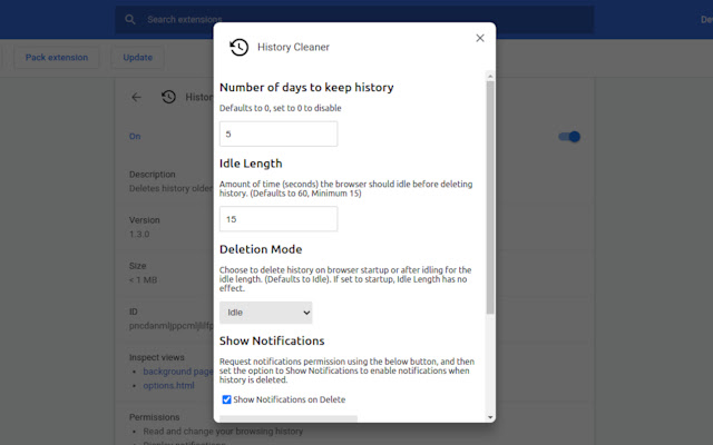 History Cleaner, size geçmiş temizleme sürecindeki gereksiz birkaç adımı ortadan kaldırma seçeneği sunan basit ama çok yönlü bir uzantı/eklentidir.